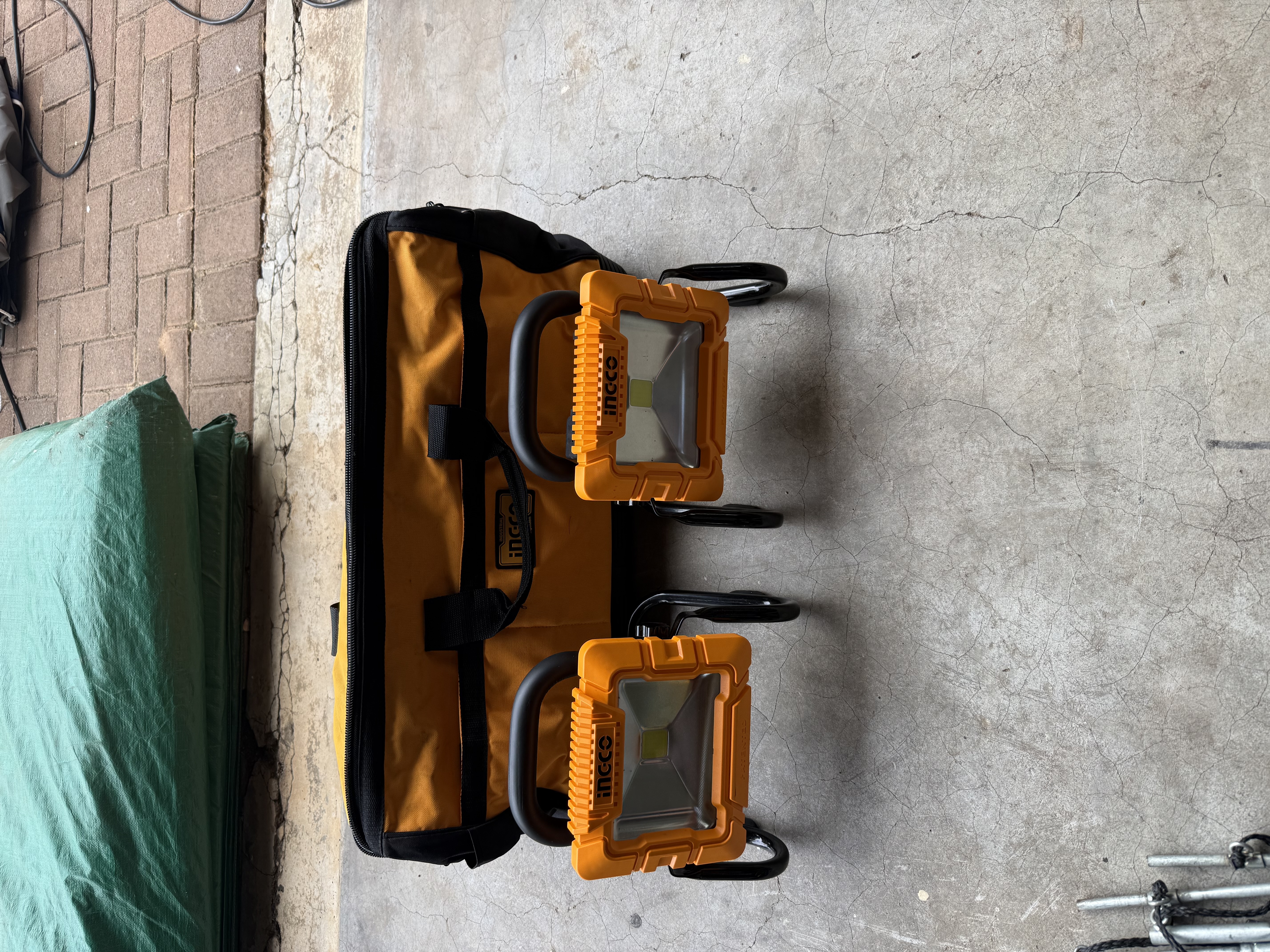 2 x flood Lights, 1 x Fan 4 x Batteries and Charger with bag and case