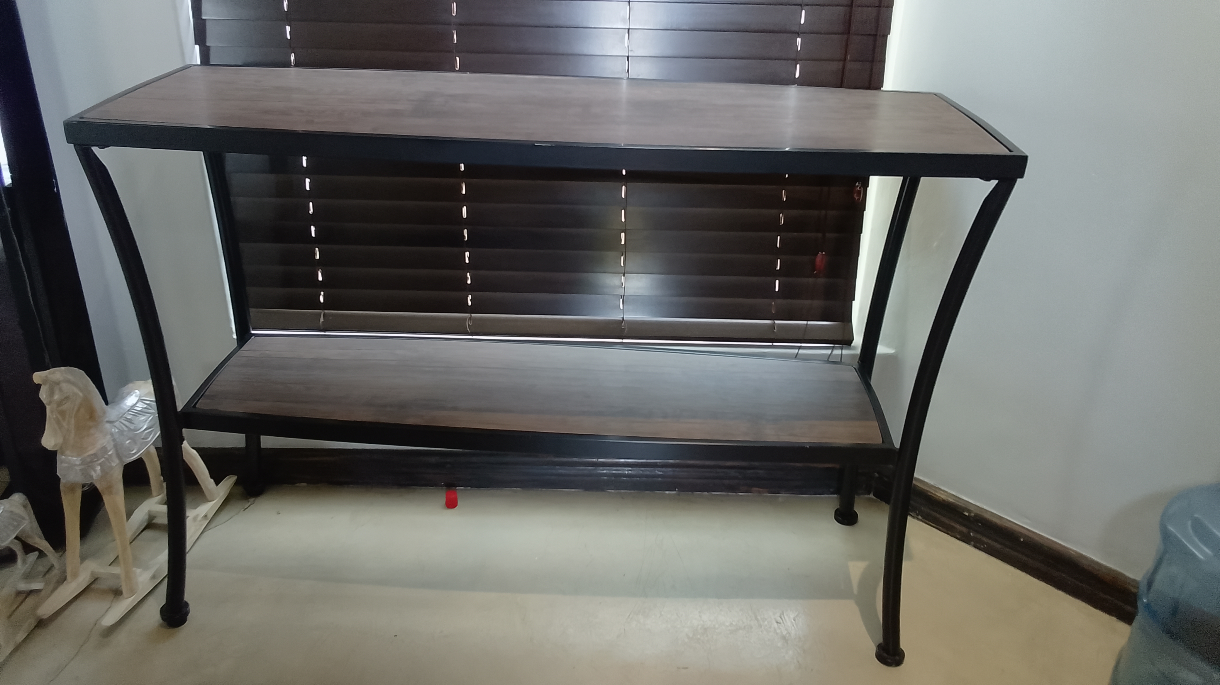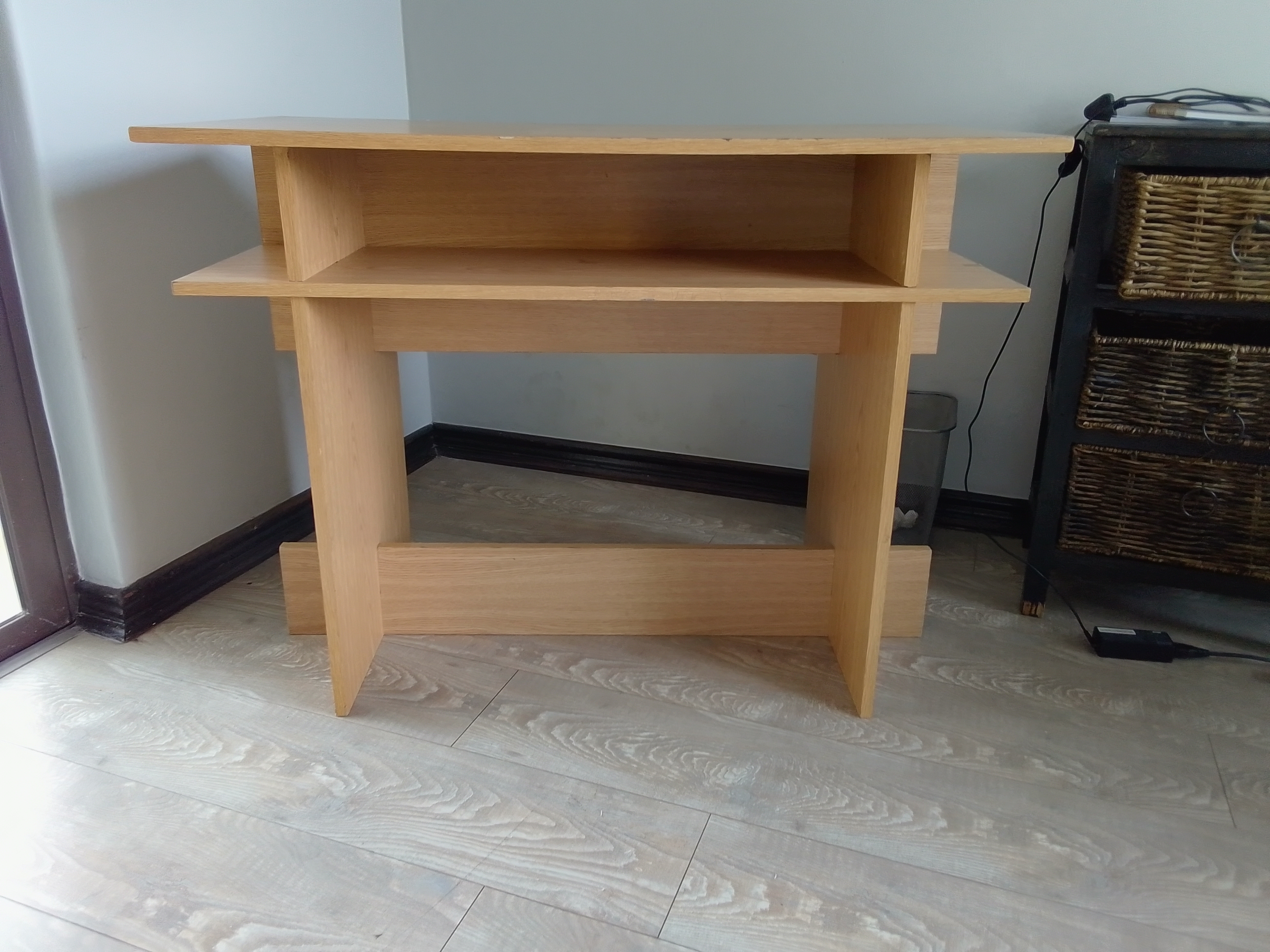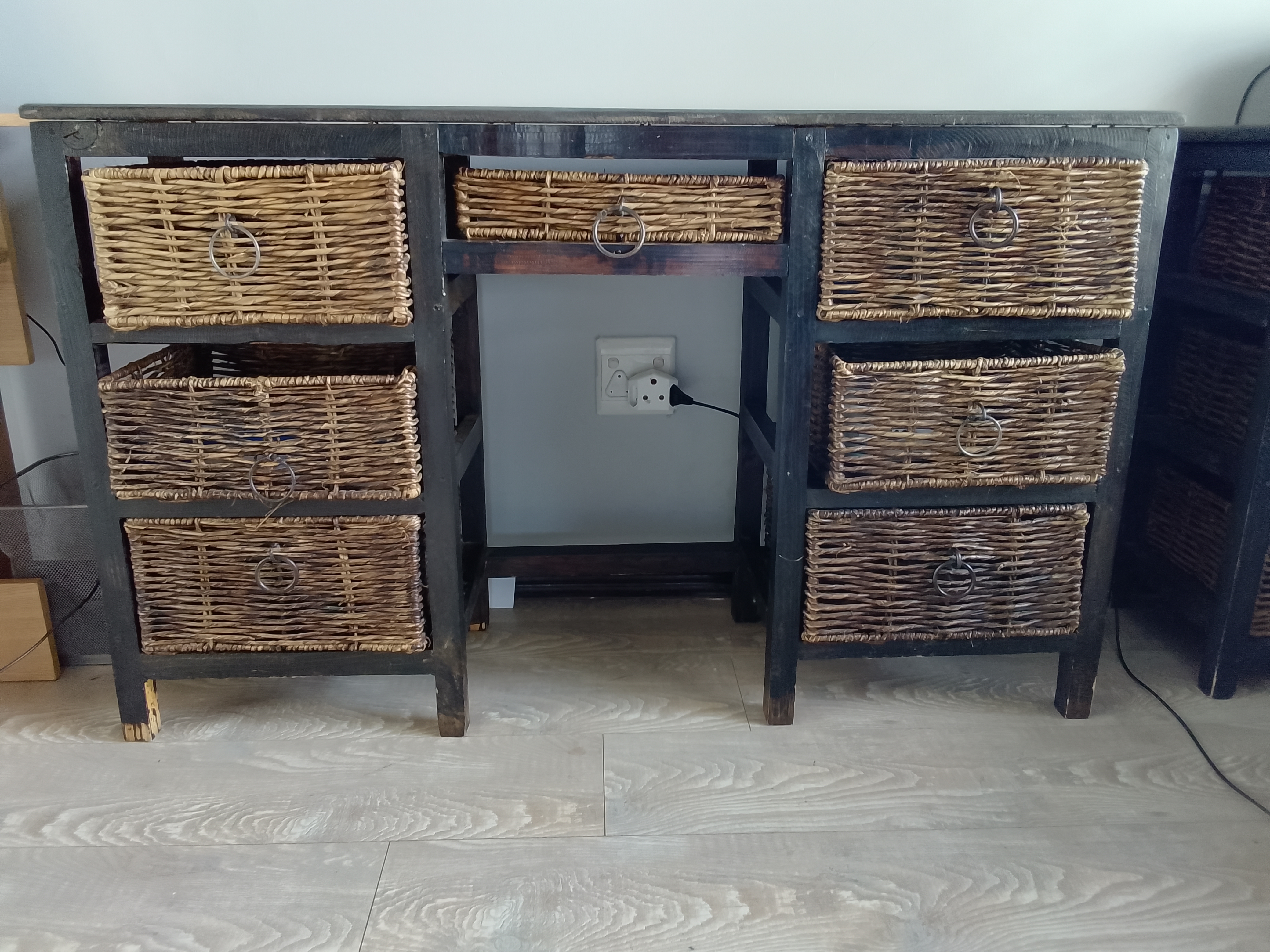 Stylish Dark Wood Console Table/Desk with Wicker Basket Storage