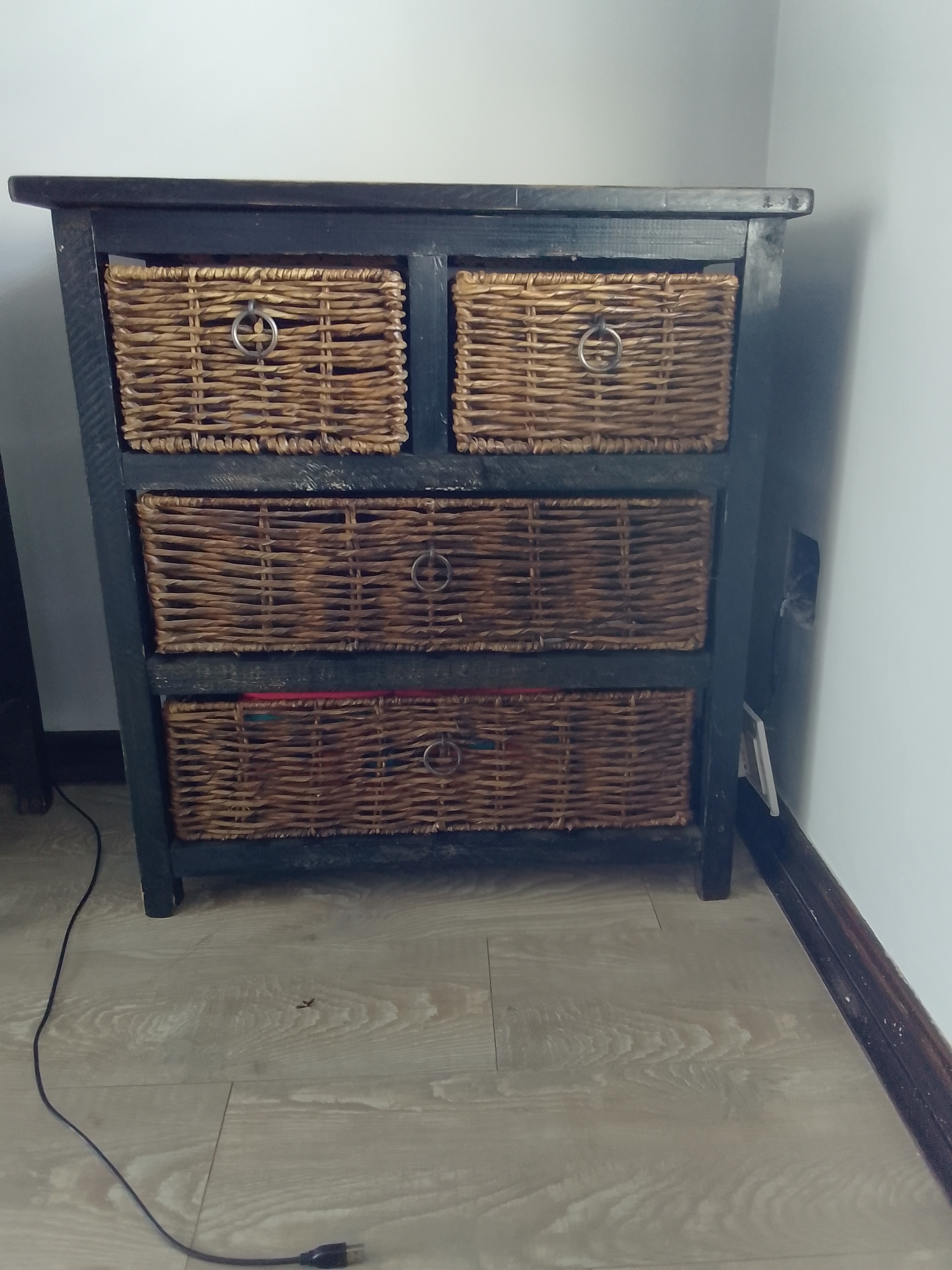 Safavieh Herman Brown Wood Storage Unit with wicker baskets