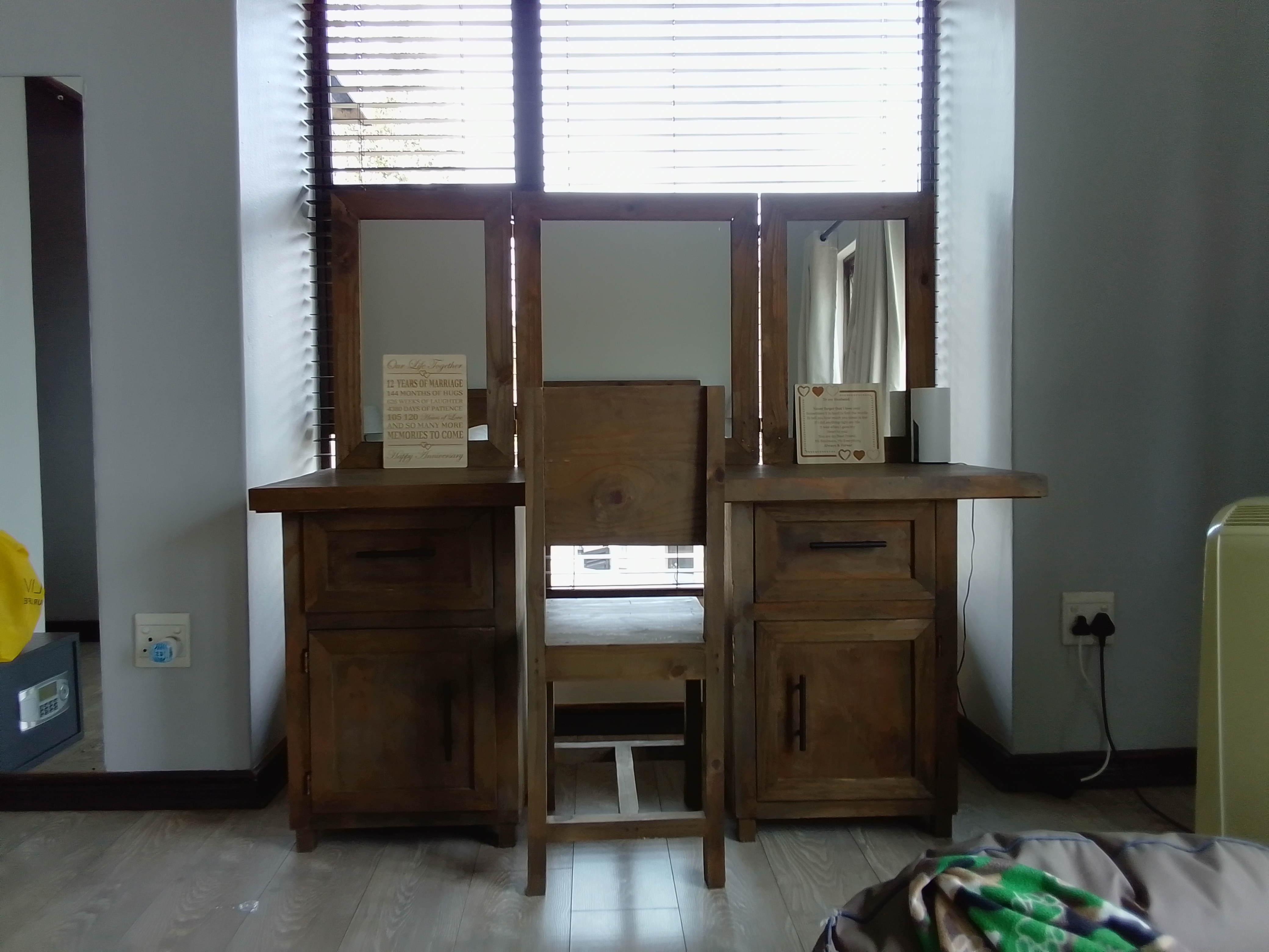 Stunning Solid Wood Tri-Fold Vanity Set with Matching Chair