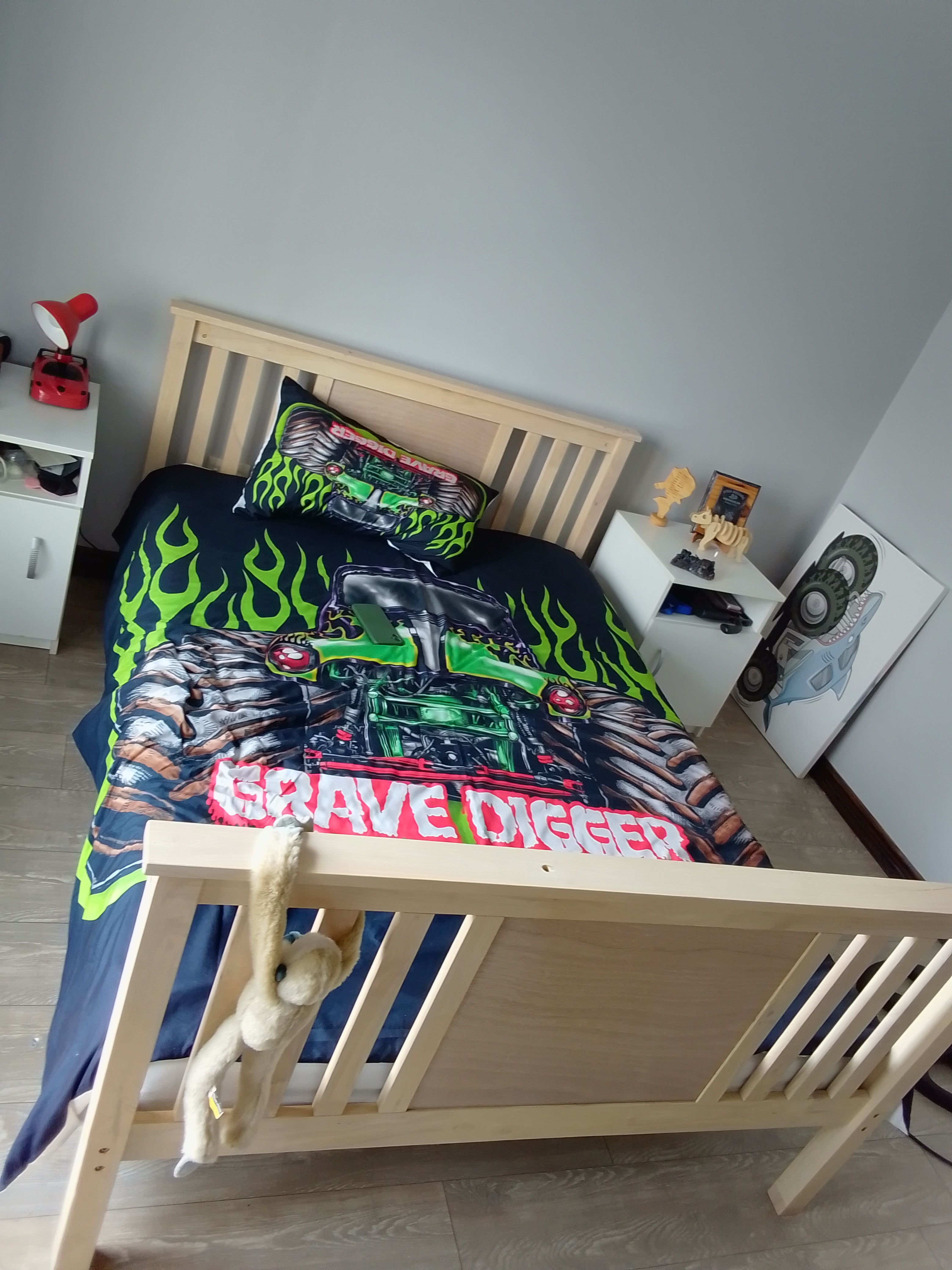 Sturdy Light Wood Bed Frame with Mattress