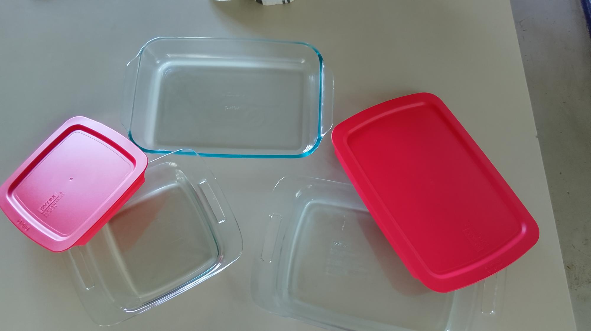 Hardly Ben used , still in very good condition Features: 1 rectangular glass dish with red lid 1 square glass dish with lid 1 rect...